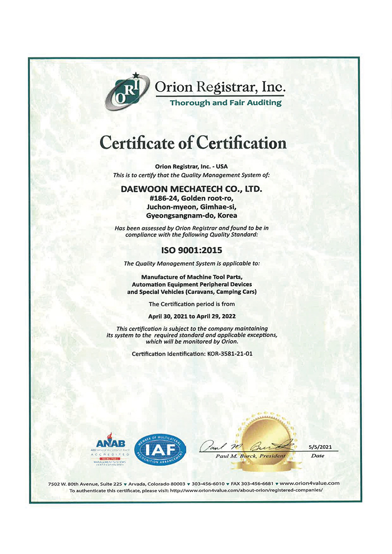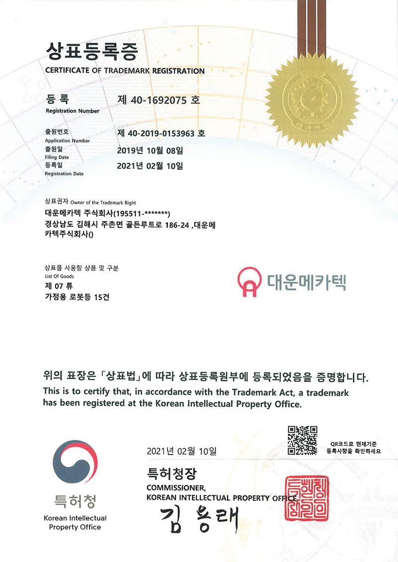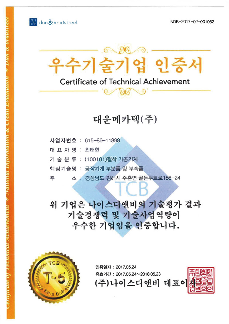 대운메카텍(주) 인증패
